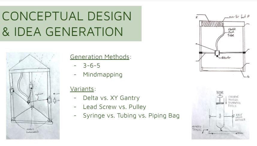 After conducting a consumer questionnaire to determine customer needs, the group began brainstorming concepts. 6-3-5 Sketching, Mindmapping, and Functional Models were used to create a novel product that optimized facets such as nutrition, reusability, ease-of-use, size, cost, and cleanability.